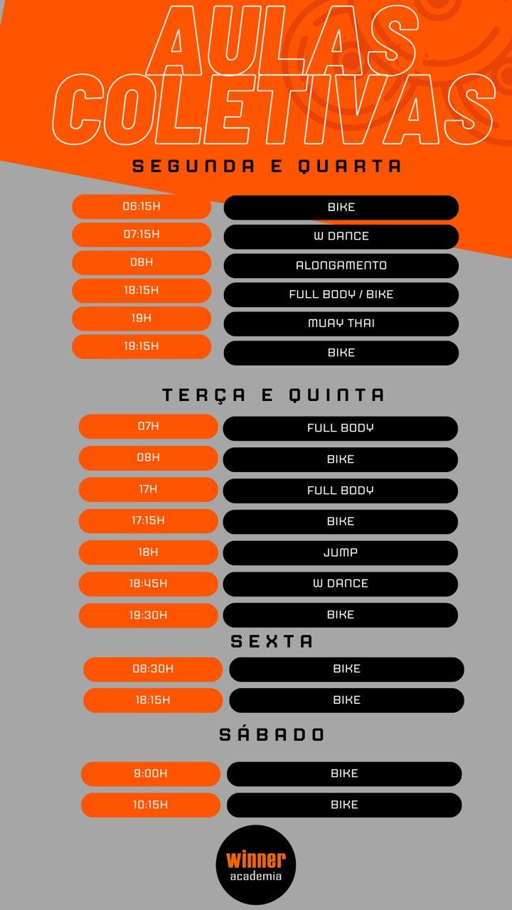 Fundada em 2007 a Winner Academia oferece diversas modalidades esportivas, sempre visando a saúde, melhora do condicionamento físico e bem estar de seus alunos em um espaço amplo, super agradável, descontraído e alto astral. Totalmente reformulada, a Winner Academia oferece diversas modalidades esportivas com os mais modernos equipamentos à sua disposição. Profissionais treinados e atualizados irão acompanhar sua evolução. Venha conhecer a Winner Academia e seu jeito único de cuidar da sua saúde e bem estar!